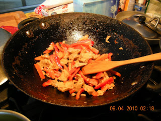 Be sure to have a large bowl on hand in which to put the ingredients in after they finish their turn in the skillet/wok. After frying them all individually, toss it all back in and fry just to make it up to par in terms of temperature.