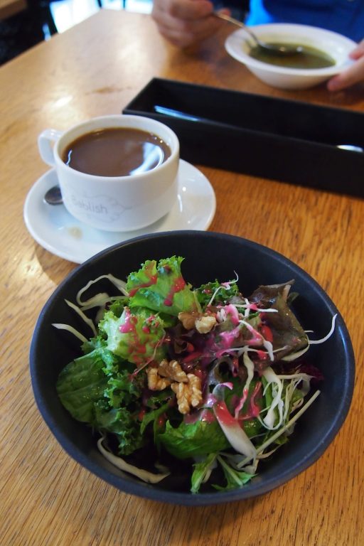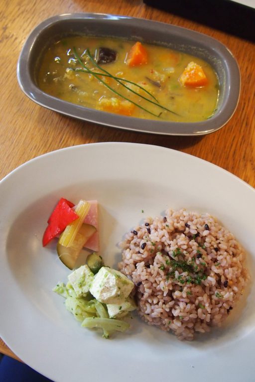 Hearty, savory vegan ramen at palatable set meal prices abound at T’s Tan Tan, an all-vegan restaurant with convenient locations inside Tokyo train stations (yes, this is a thing in Tokyo: fully stocked malls and restaurants inside train stations!). We stopped by the Ueno location, which had two choices of ramen sets and two rice sets paired with an excellent quality coffee or tea (their coffee was, by our estimation, the best tasting one during our whole trip!).