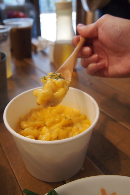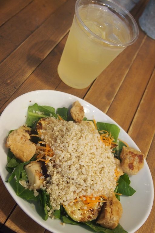 High on clean, minimal and eco-friendly style and a bit low on flavor, 8ablish is a good pick for those worried about their waistline. A rotating menu is featured everyday, with all choices written in neat markerboard. We had both their special (yellow mung bean Italian stew) and their fixed menu item (tempeh, grilled vegetables and tofu skewers with pitabread and rice). Everything was pretty flavorless and we left still a bit hungry. On Mondays, they give you a shot-sized dessert in honor of Meatless Monday.